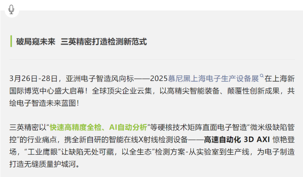 3D AXI引爆全場!勢領電子智造檢測新未來 | 三英精密2025慕尼黑上海電子展高燃收官!